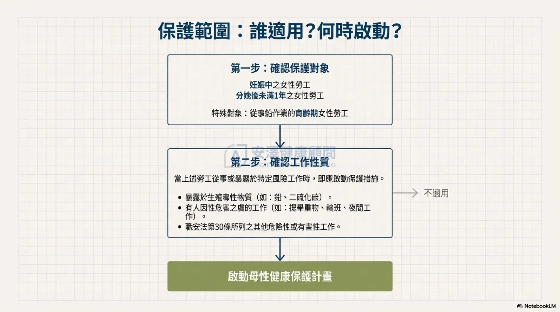 根據勞動部最新指引,企業必須針對以下對象啟動保護計畫: