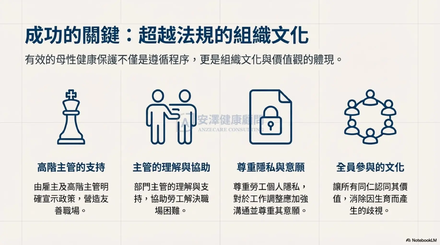 為了協助您更清楚掌握執行細節,我們製作了簡報《職場母性健康保護全攻略:依循勞動部最新指引》。歡迎線上瀏覽重點精華: